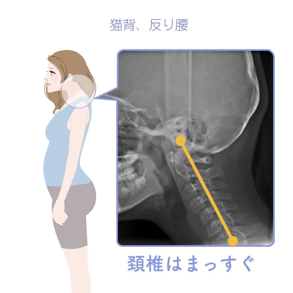 首から背中にかけて“まっすぐ”に近づいていく――いわゆる「ストレートネック」状態となっていきます。