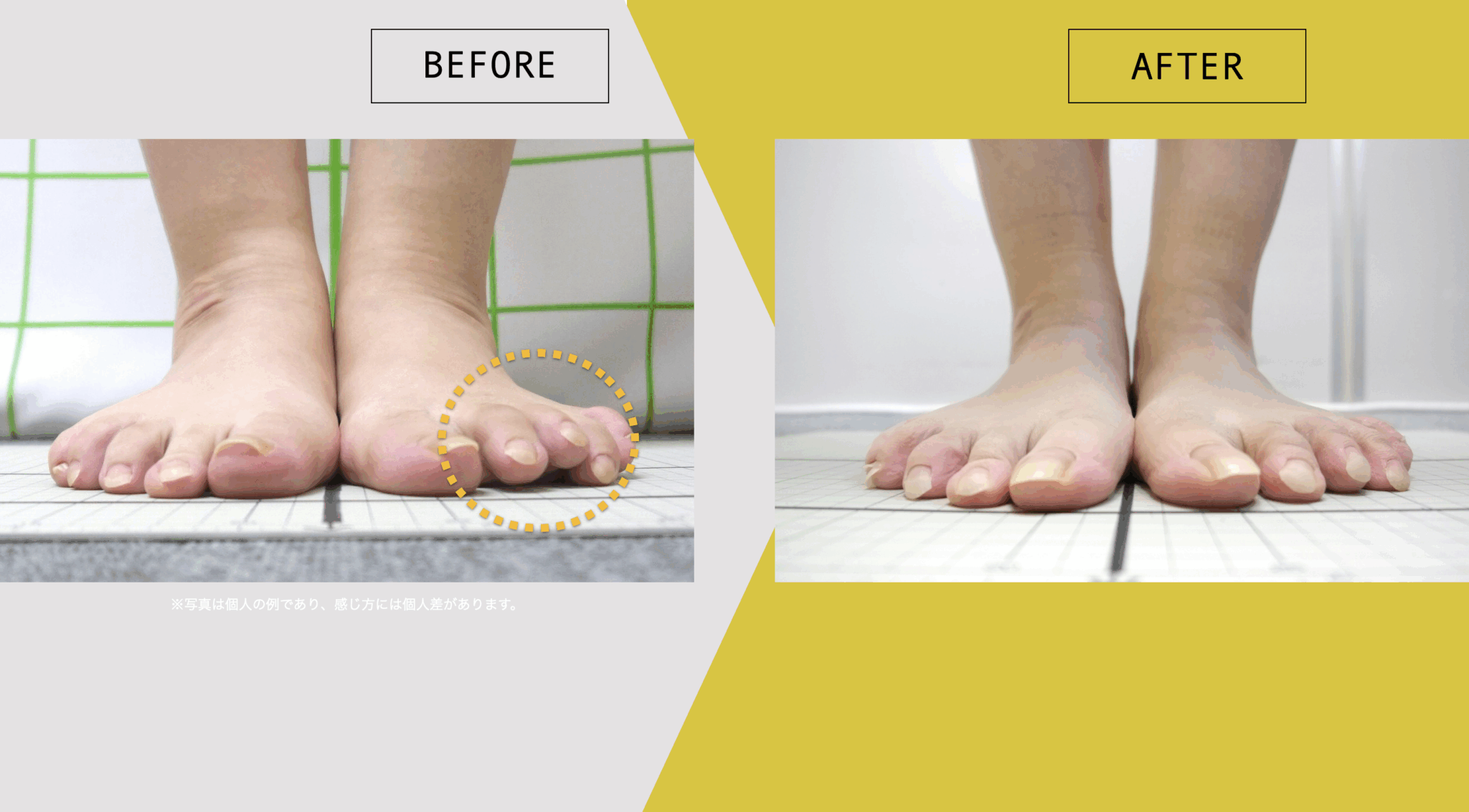 これらは「足指の機能に働きかけた際、こうした変化が観察された」という臨床データであり、効果や改善を保証するものではありません。個人差があることも前提としています。