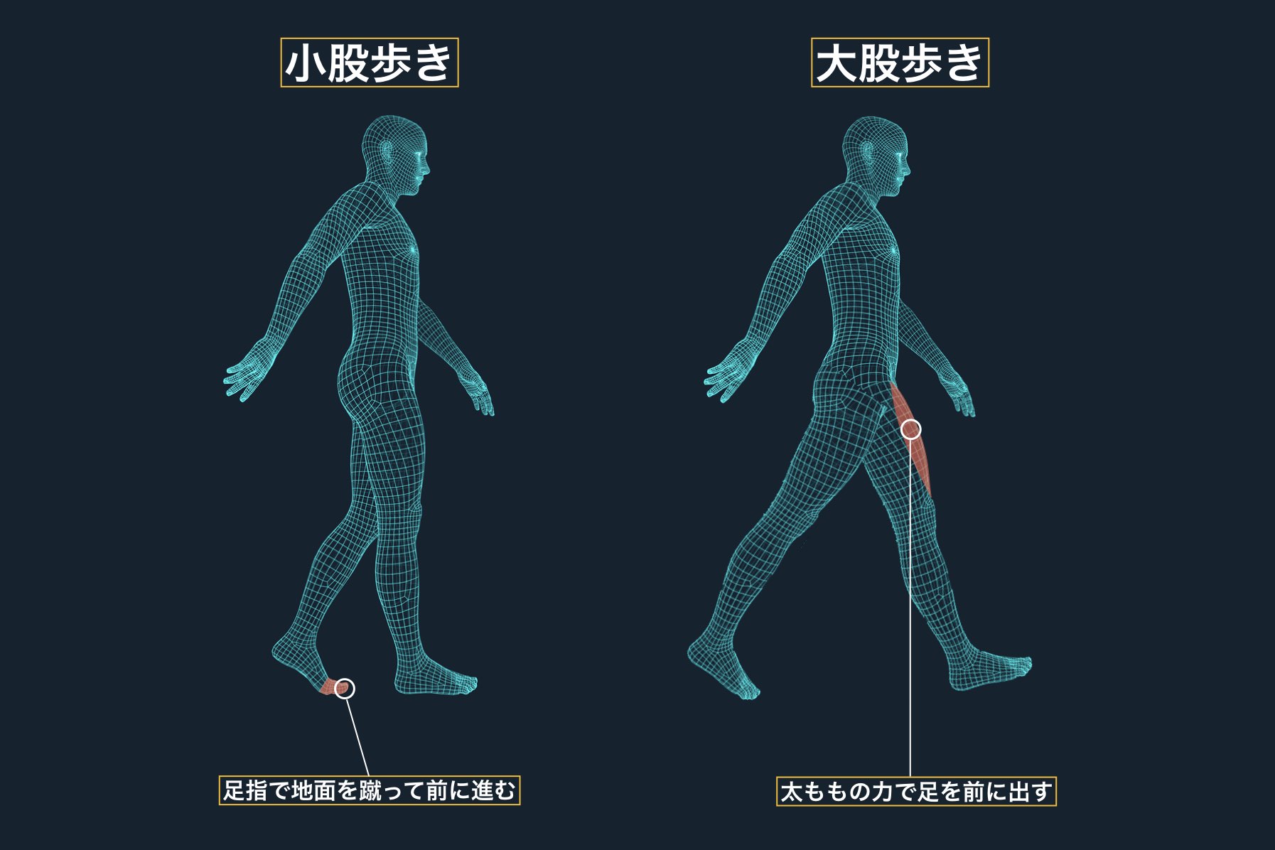 3. 大股・骨盤前傾で歩く