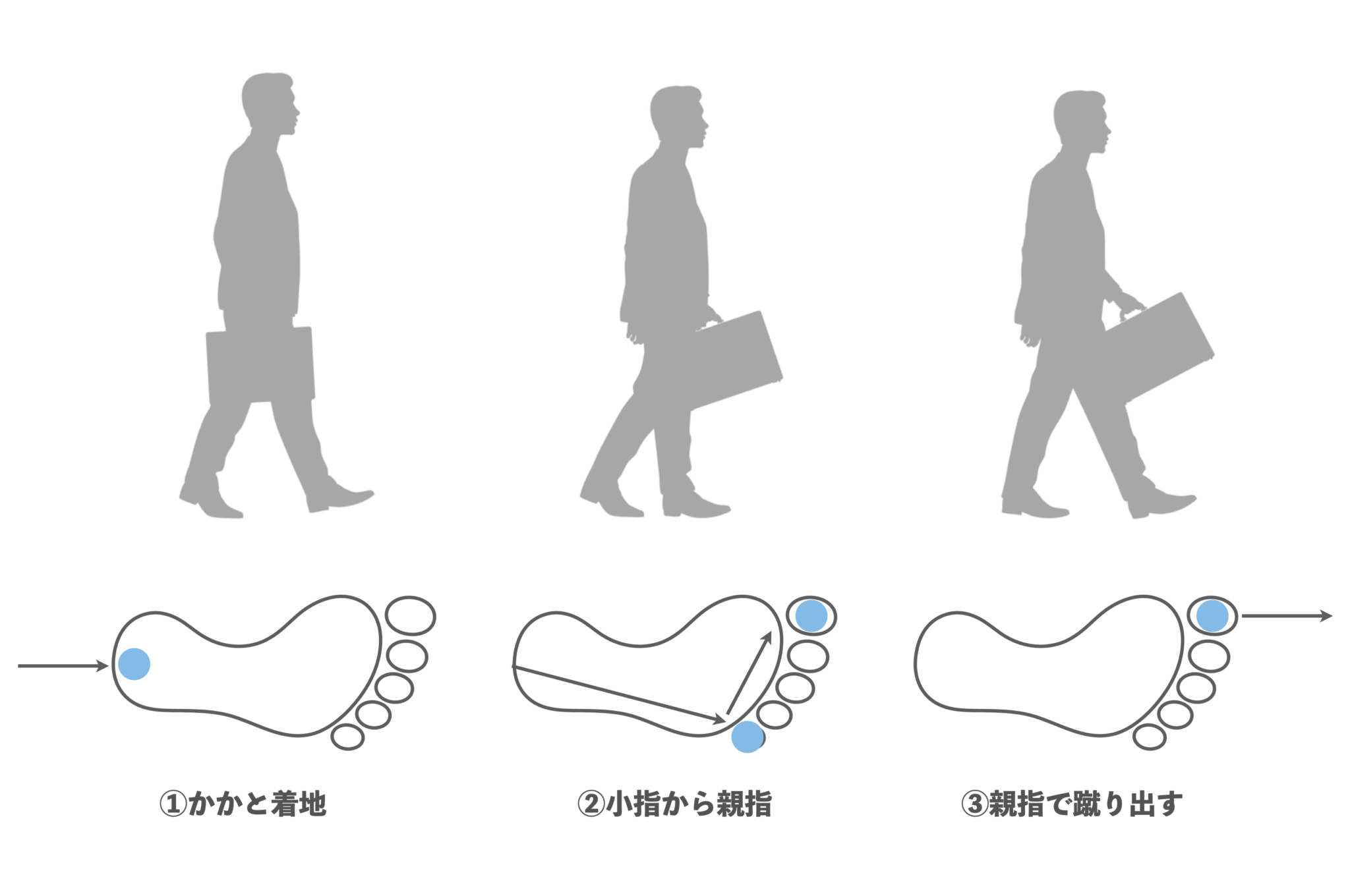 この順序の中で、小指・親指が使えないと、重心が左右にぶれて膝がねじれるようになります。これが、膝痛の根源なのです。