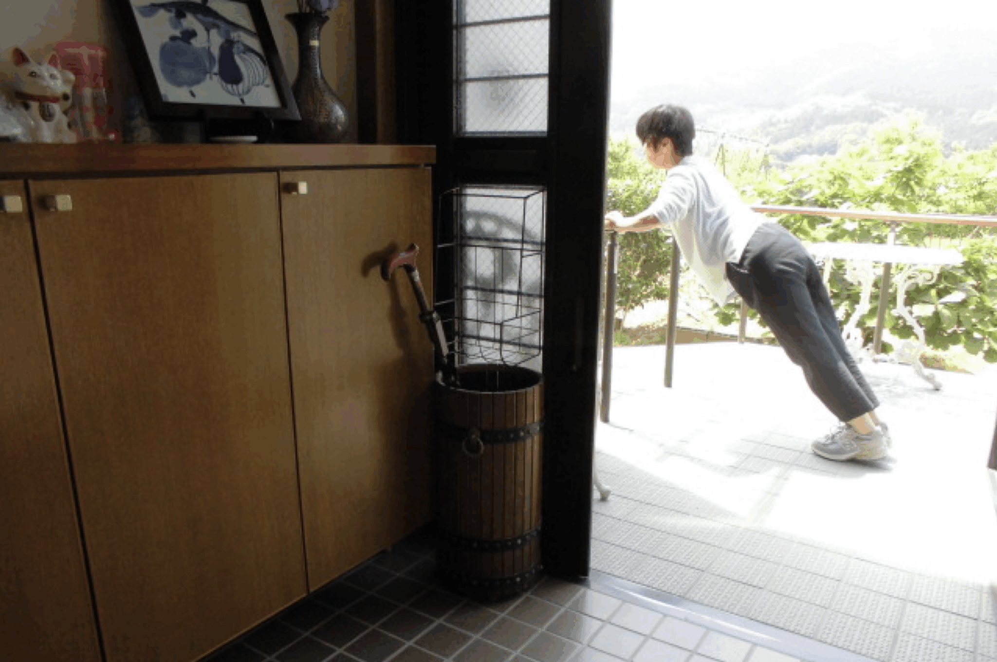 中尾さん(60代・女性)は、頸椎の手術をきっかけに全身が凝り固まり、杖や手すりなしでは歩行できない状態に。バリアフリー改修まで行ったが、湯浅先生のひろのば体操とYOSHIRO SOCKSに出会い、その日から杖なし歩行を実現。現在は日常生活を1人でこなし、散歩・料理・バス旅行も楽しめるように回復 。