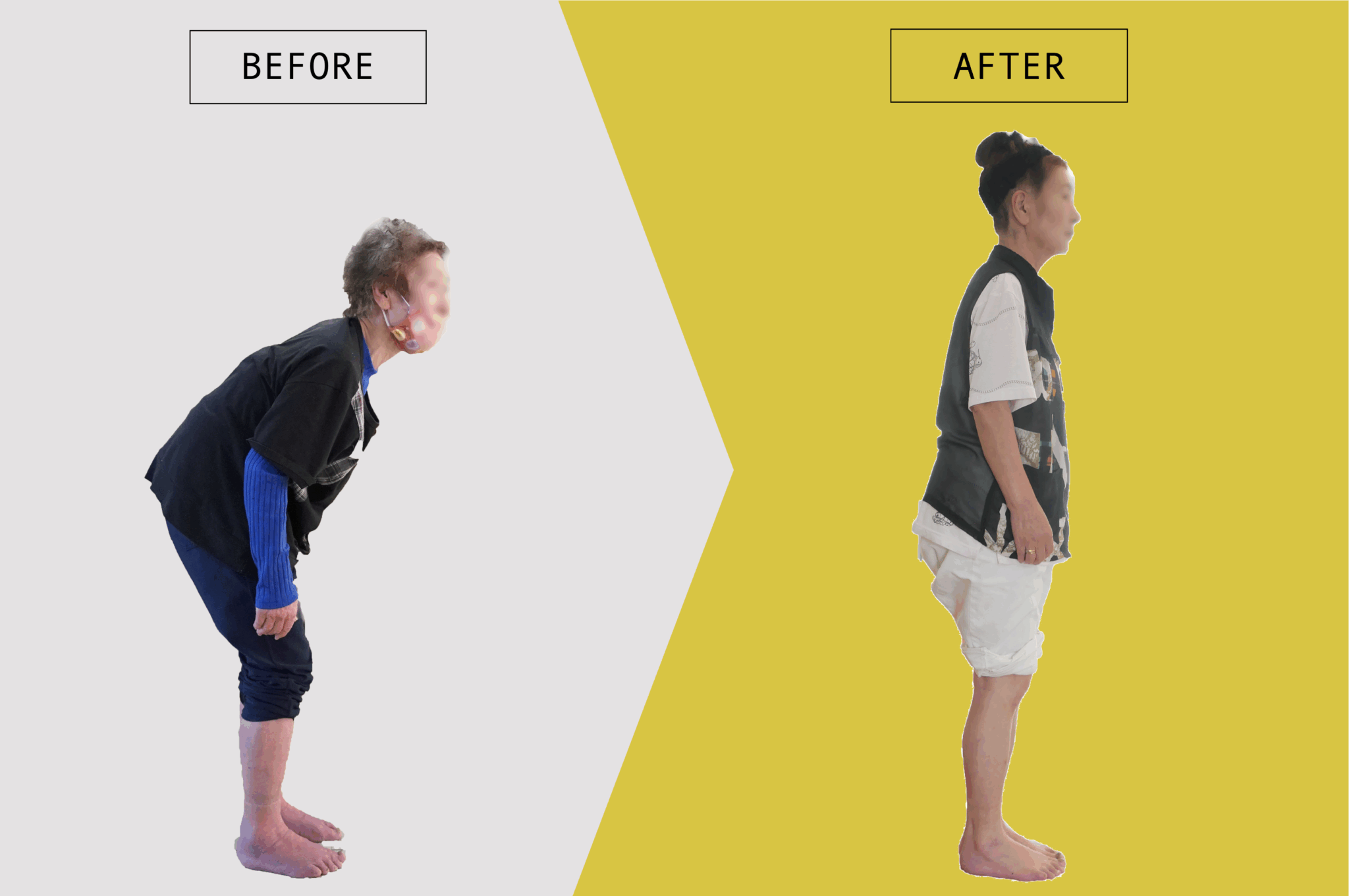 「杖なしで背すじを伸ばして歩けるなんて、夢のようです。」