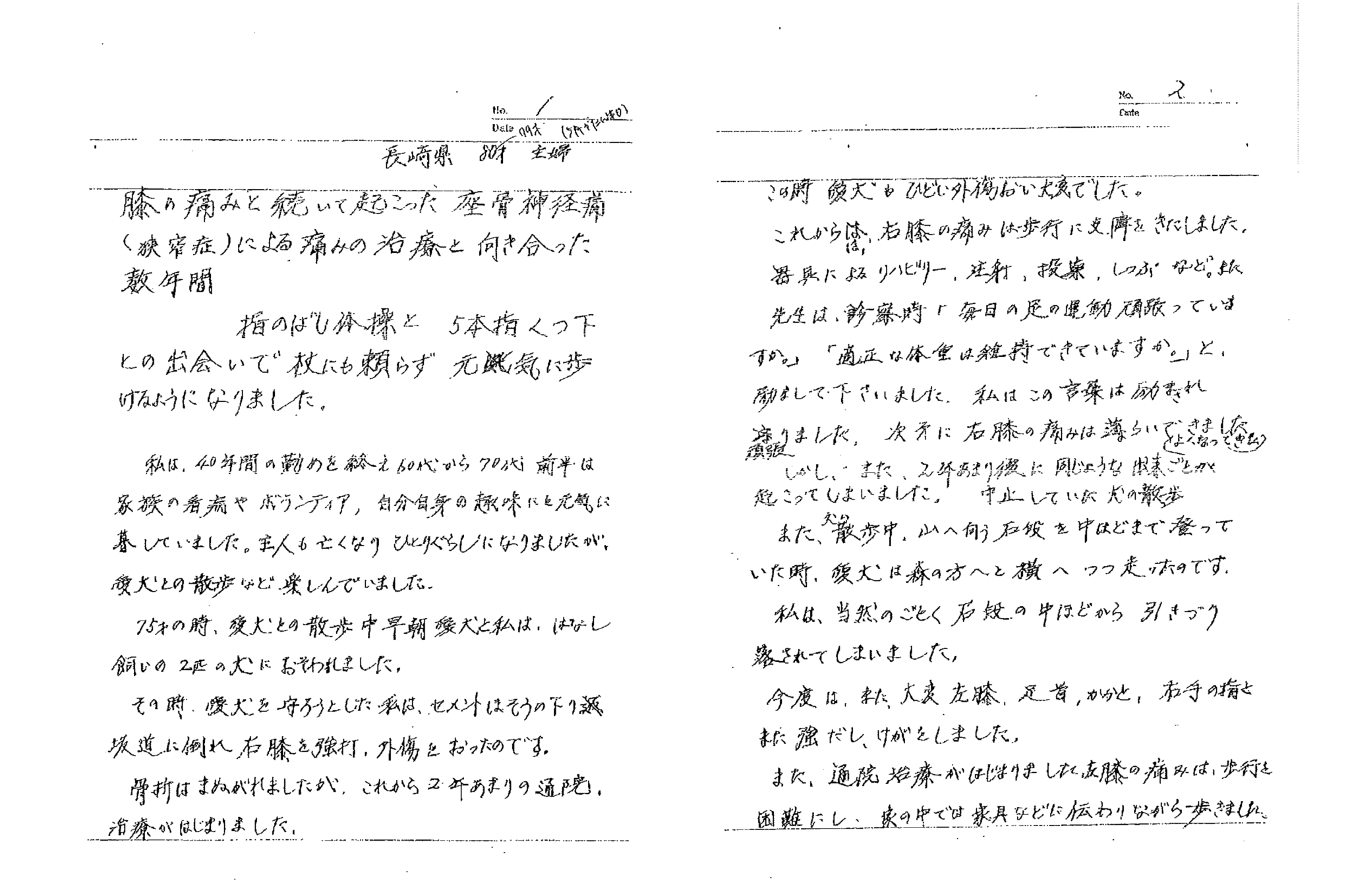 「痛みで眠れずポール歩行だった私が、今では普通に歩けるようになりました。」