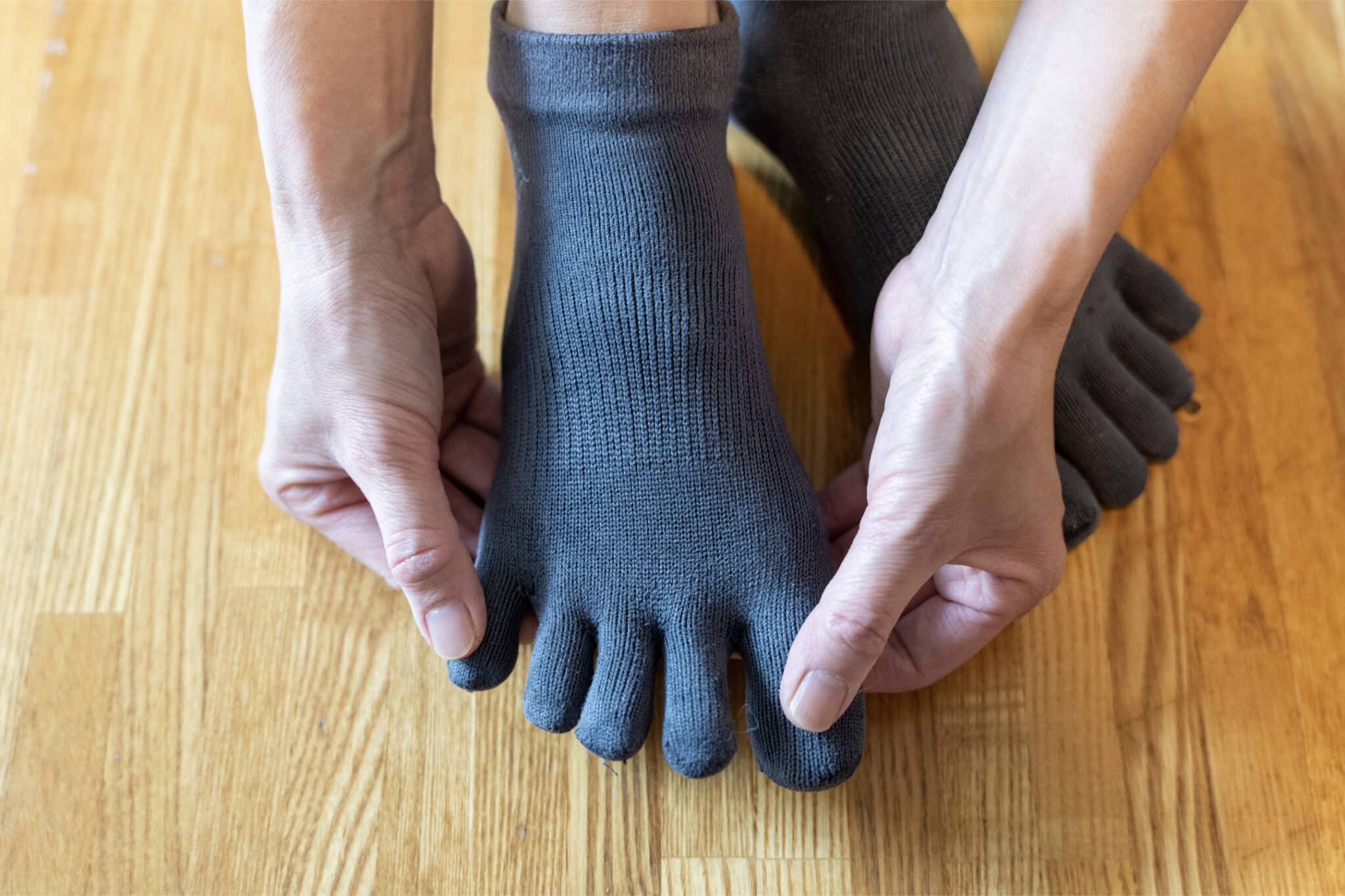 「足裏全体でしっかり立てている感覚」「滑らず、かかともずれず、足元が“安定”している」「長時間立っても疲れにくくなった」 「履くだけで自然に足指が広がり、日常生活で使いやすい」「グリップ力が高く、スリッパなしでも安心感がある」