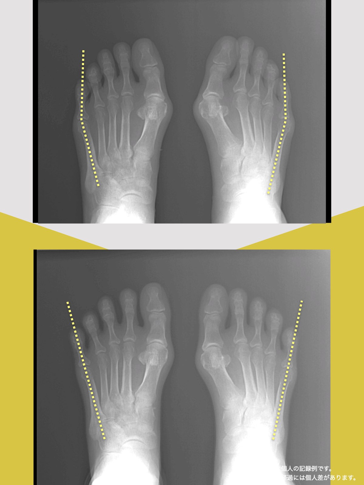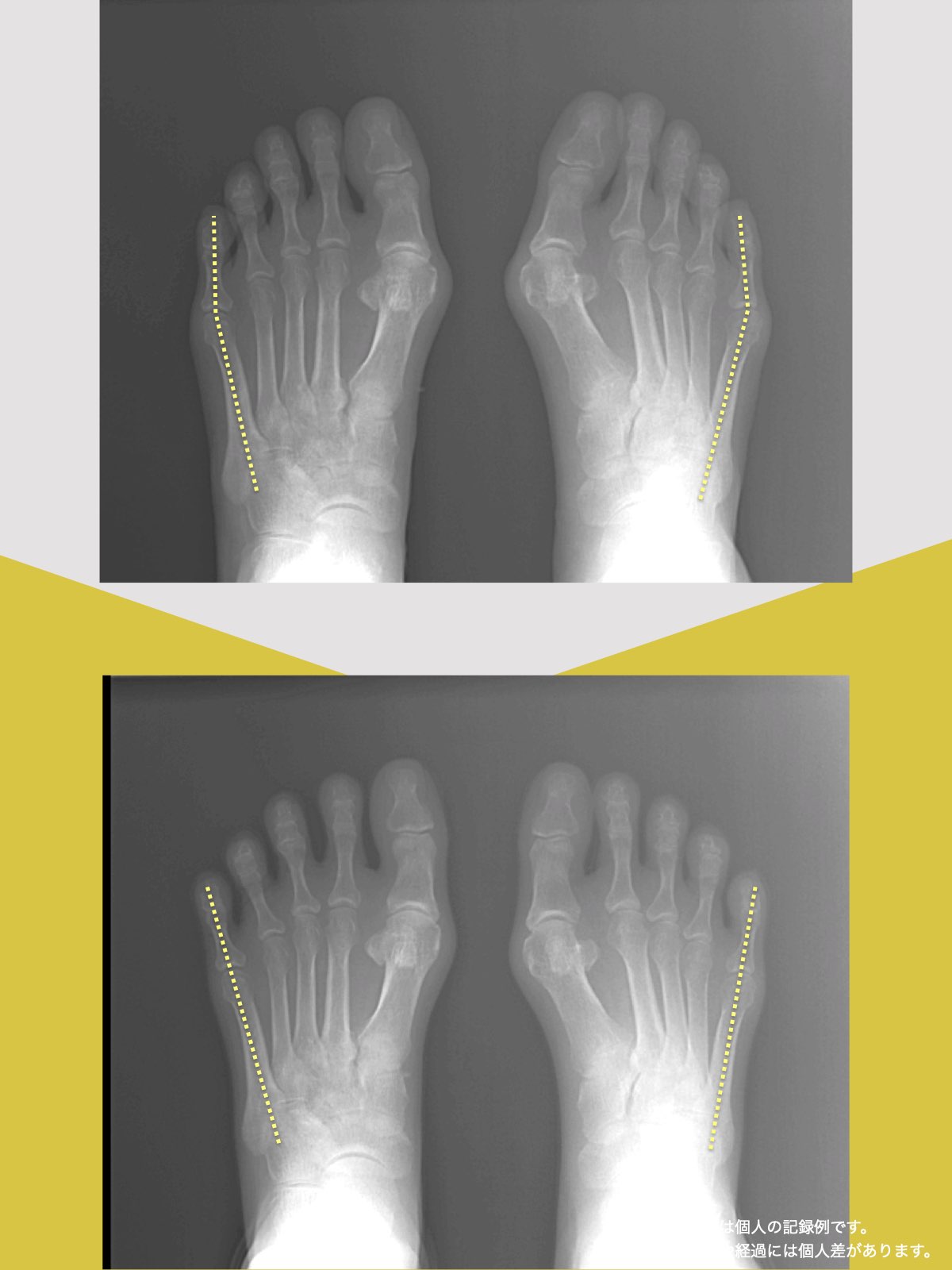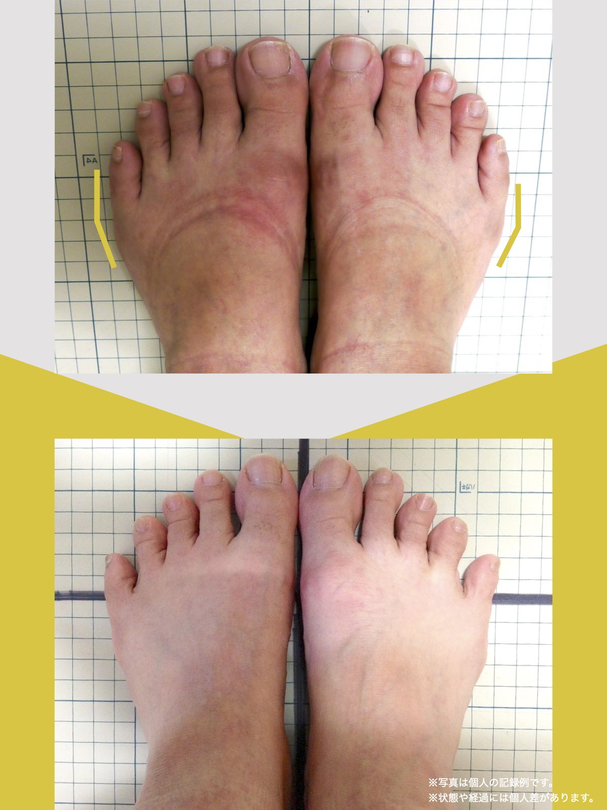 YOSHIROつまり、骨が突然変形するのではなく、足のアーチ構造が崩れた結果として出っ張りが現れると考えられます。