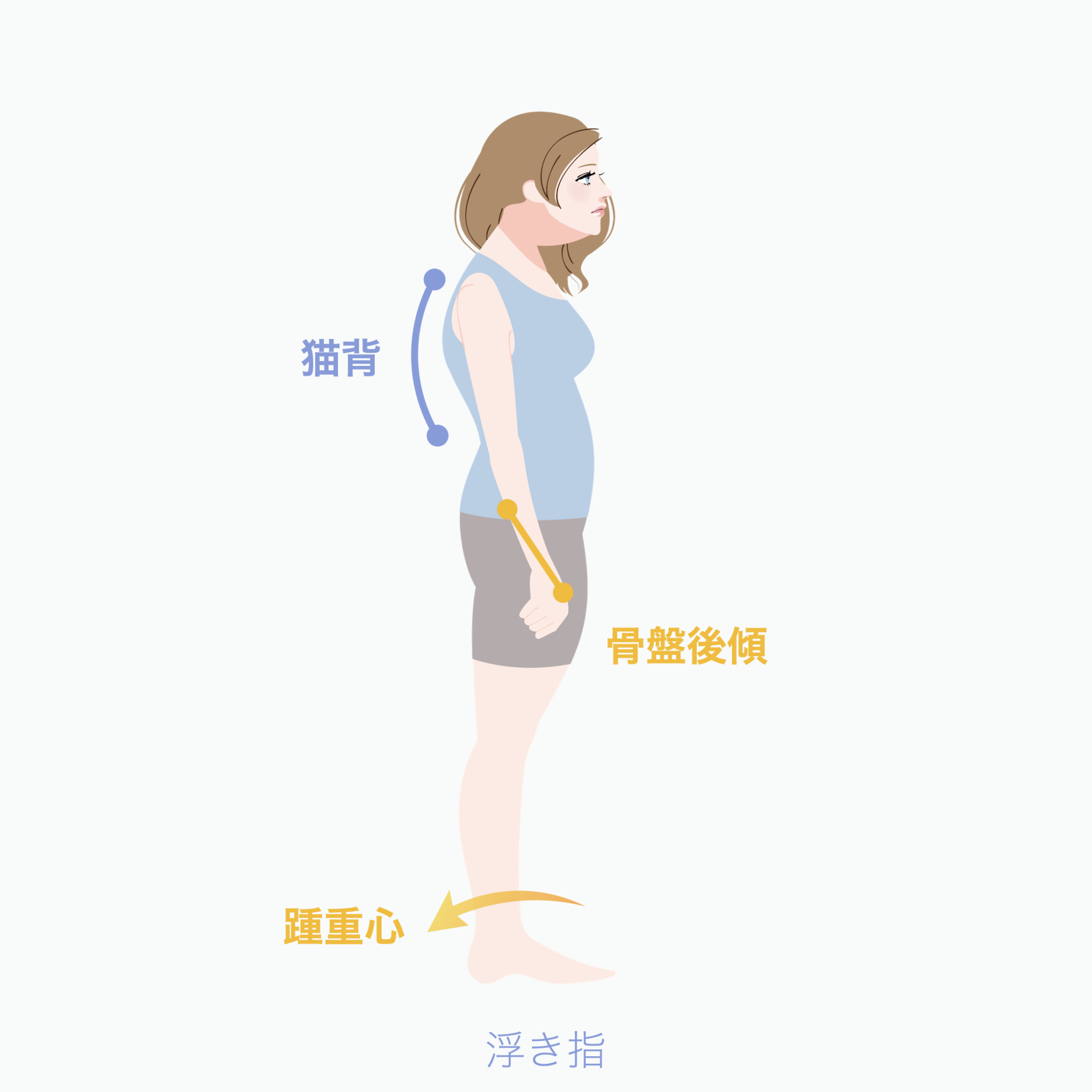 浮き指 → 後方重心 → 腰が支え役になる