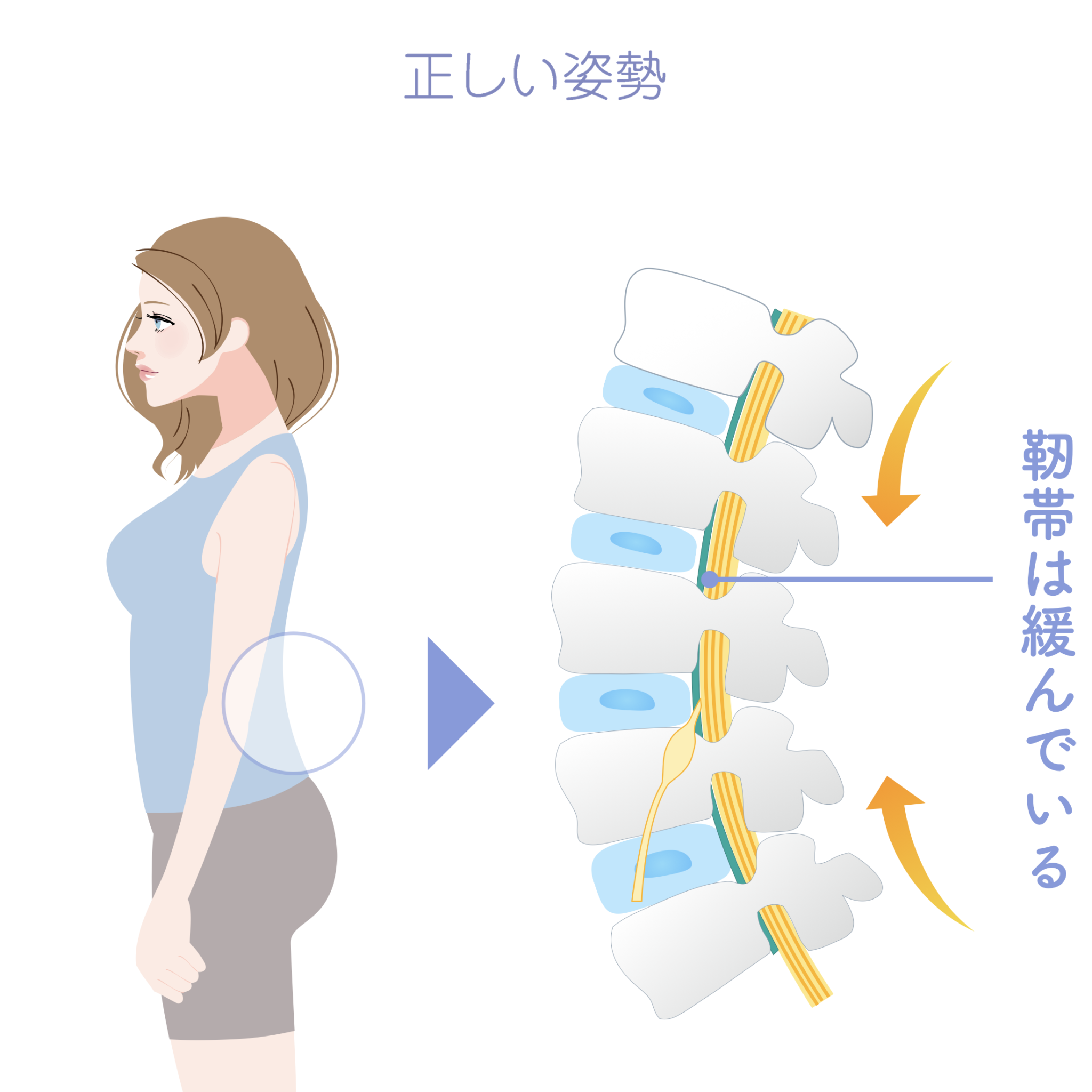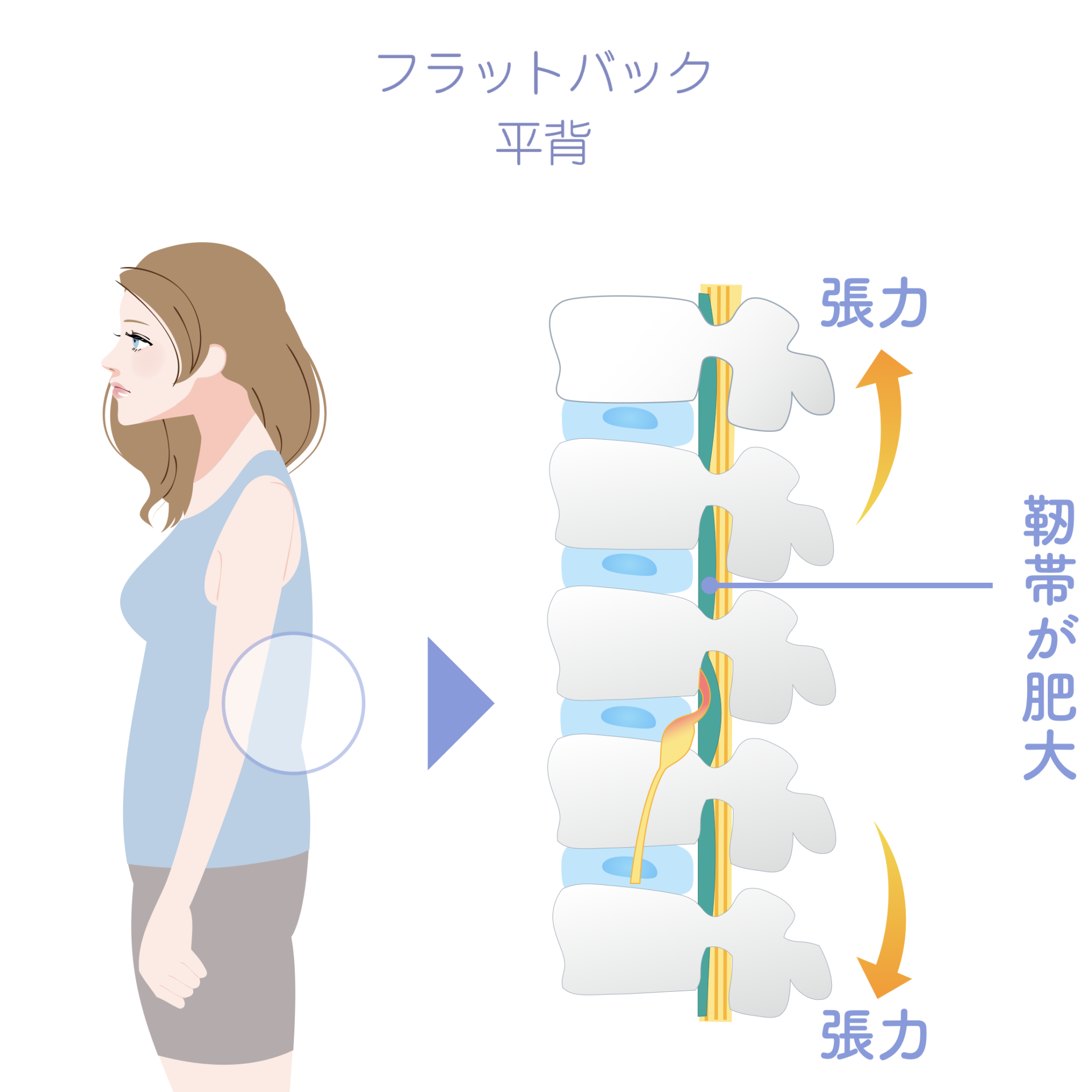 • 姿勢の崩れが後方靱帯に負担を集中させる
