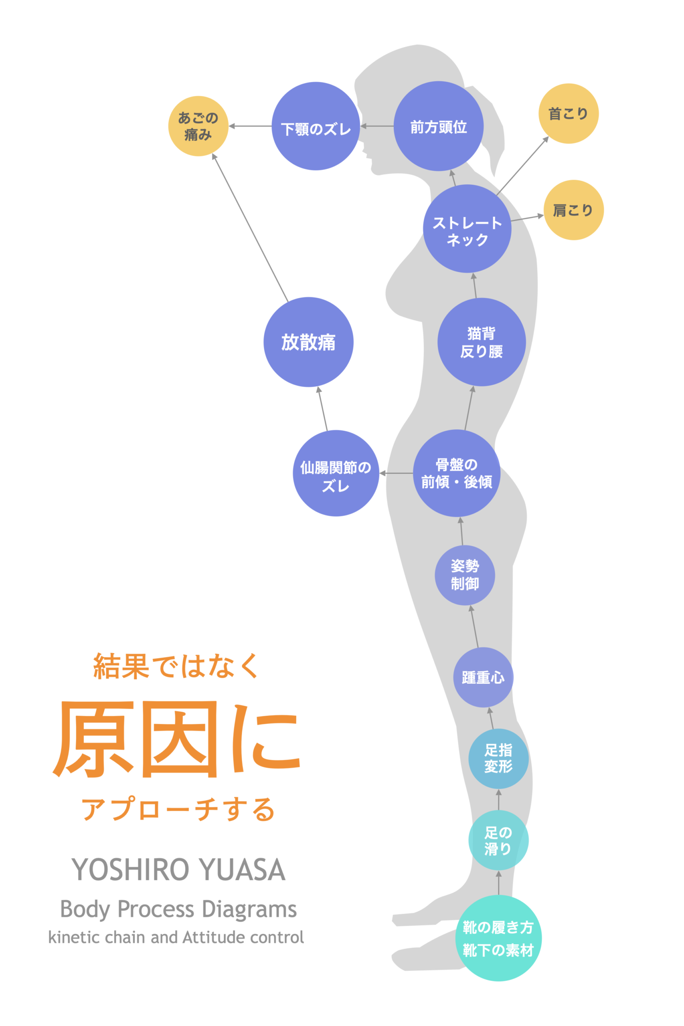 この図は、顎関節症の人に多い“体の連鎖”です。