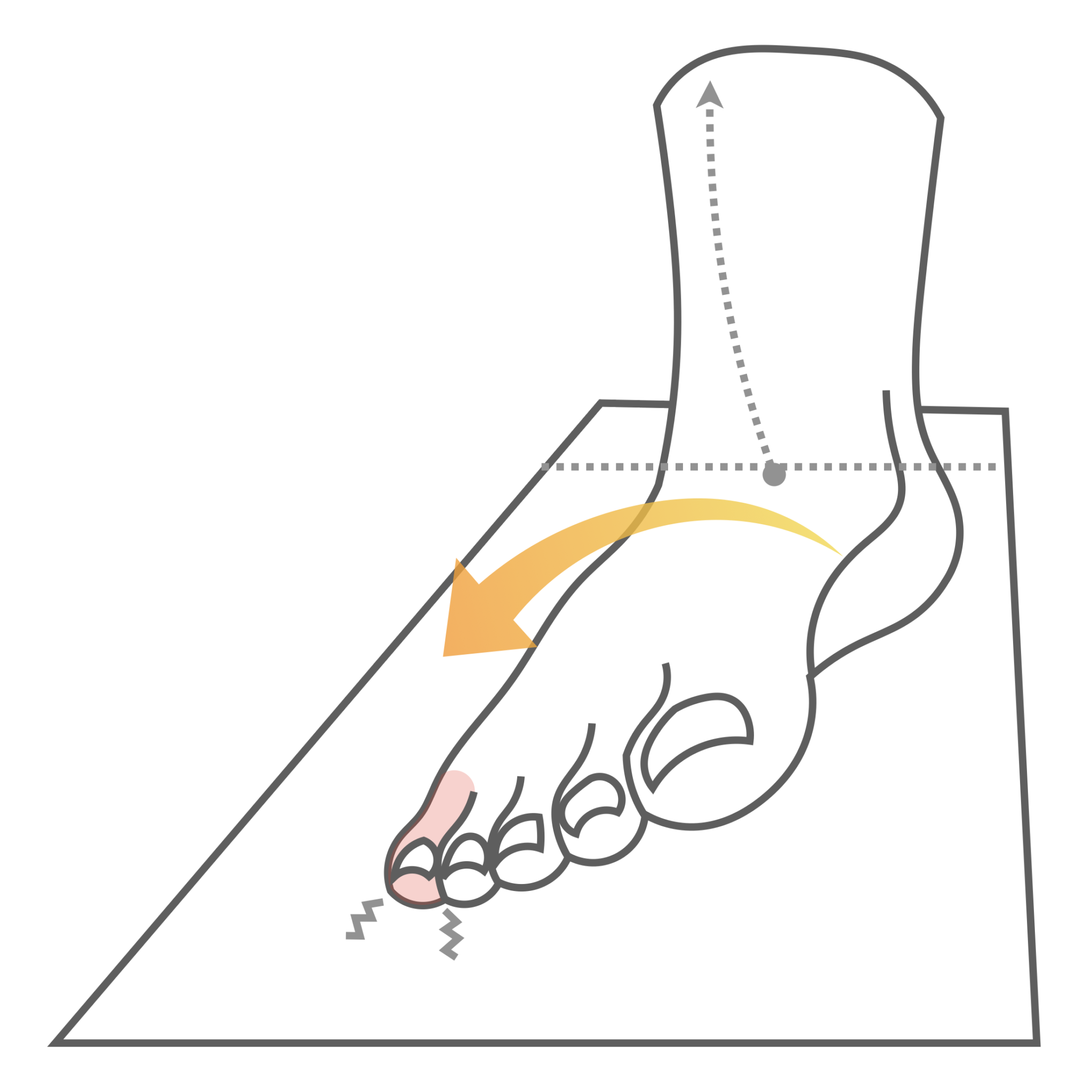 この状態が続くと、前足部は「荷重の終点」ではなく、