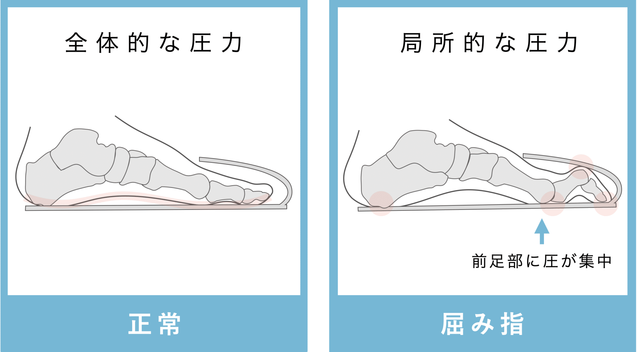 摩擦と圧迫が集中し、痛みが出やすくなります。
