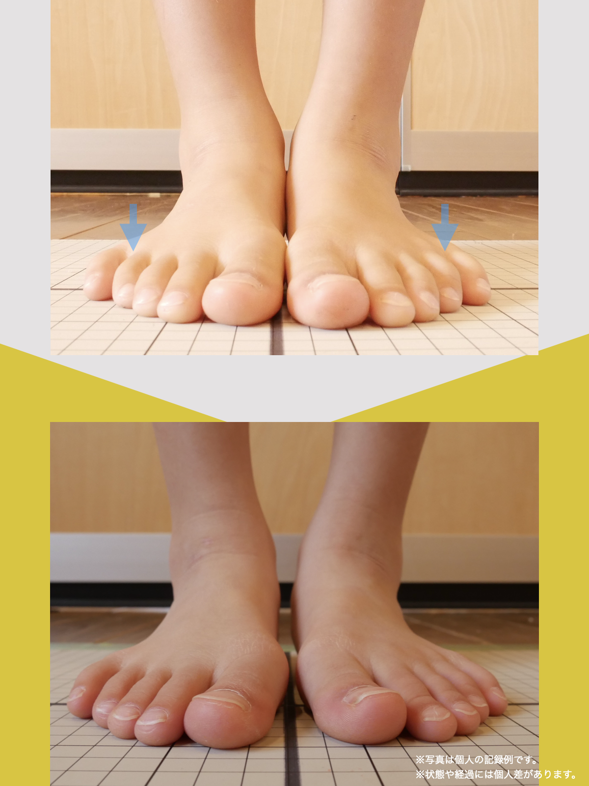 - 足指が地面に接地していない