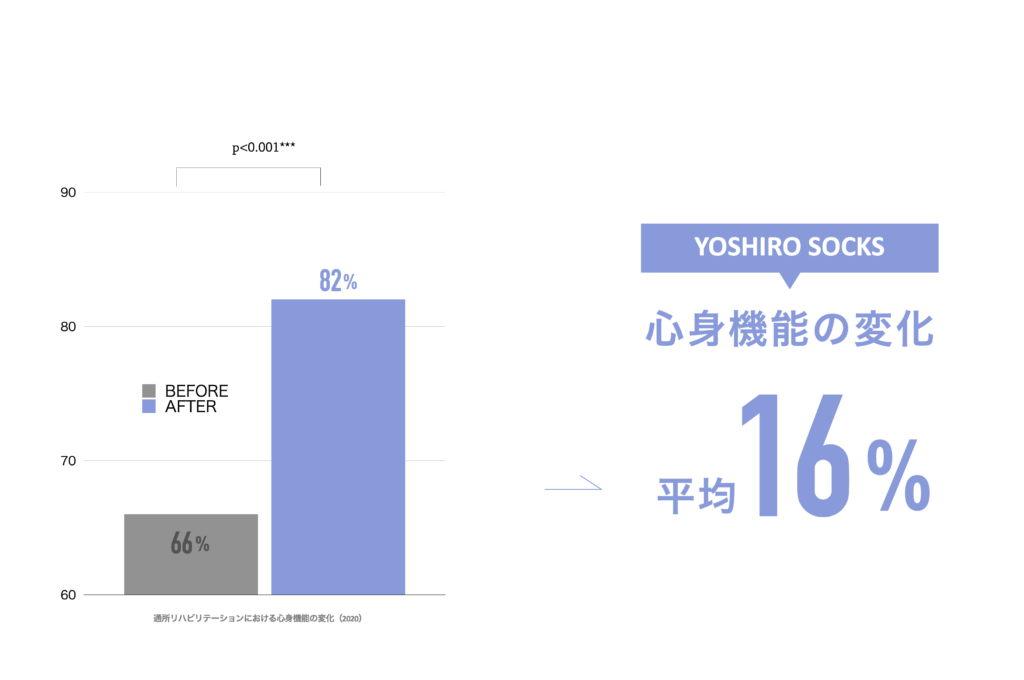 本データでは、SOCKS装着時において、心身機能の評価指標に有意な差が認められました。